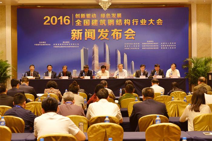 5月14日上午,以“創(chuàng)新驅(qū)動、綠色發(fā)展”為主題的2016全國建筑鋼結(jié)構(gòu)行業(yè)大會新聞發(fā)布會在安徽合肥隆重舉行。本次發(fā)布會圍繞我國鋼結(jié)構(gòu)行業(yè)如何通過創(chuàng)新驅(qū)動推動鋼鐵行業(yè)除產(chǎn)能、去庫存以及企業(yè)如何發(fā)展以鋼結(jié)構(gòu)和裝配式建筑為代表的綠色建筑等熱點問題展開。包括人民日報、新華社、中國建設(shè)報、科技日報、中國財經(jīng)報、中國冶金報、中國房地產(chǎn)報、建筑時報、安徽日報、合肥日報、證券時報、證券日報、上海證券報、中國證券報、合肥市電視臺、巢湖電視臺、新浪網(wǎng)、搜狐網(wǎng)、騰訊網(wǎng)、鳳凰網(wǎng)等多家媒體受邀參加了由主辦方召開的新聞發(fā)布會。鋼結(jié)構(gòu)行業(yè)內(nèi)的代表性企業(yè)中建鋼構(gòu)、精工鋼構(gòu)、東南網(wǎng)架、杭蕭鋼構(gòu)、富煌鋼構(gòu)等企業(yè)領(lǐng)導(dǎo)人出席并回答了記者們關(guān)注的問題。